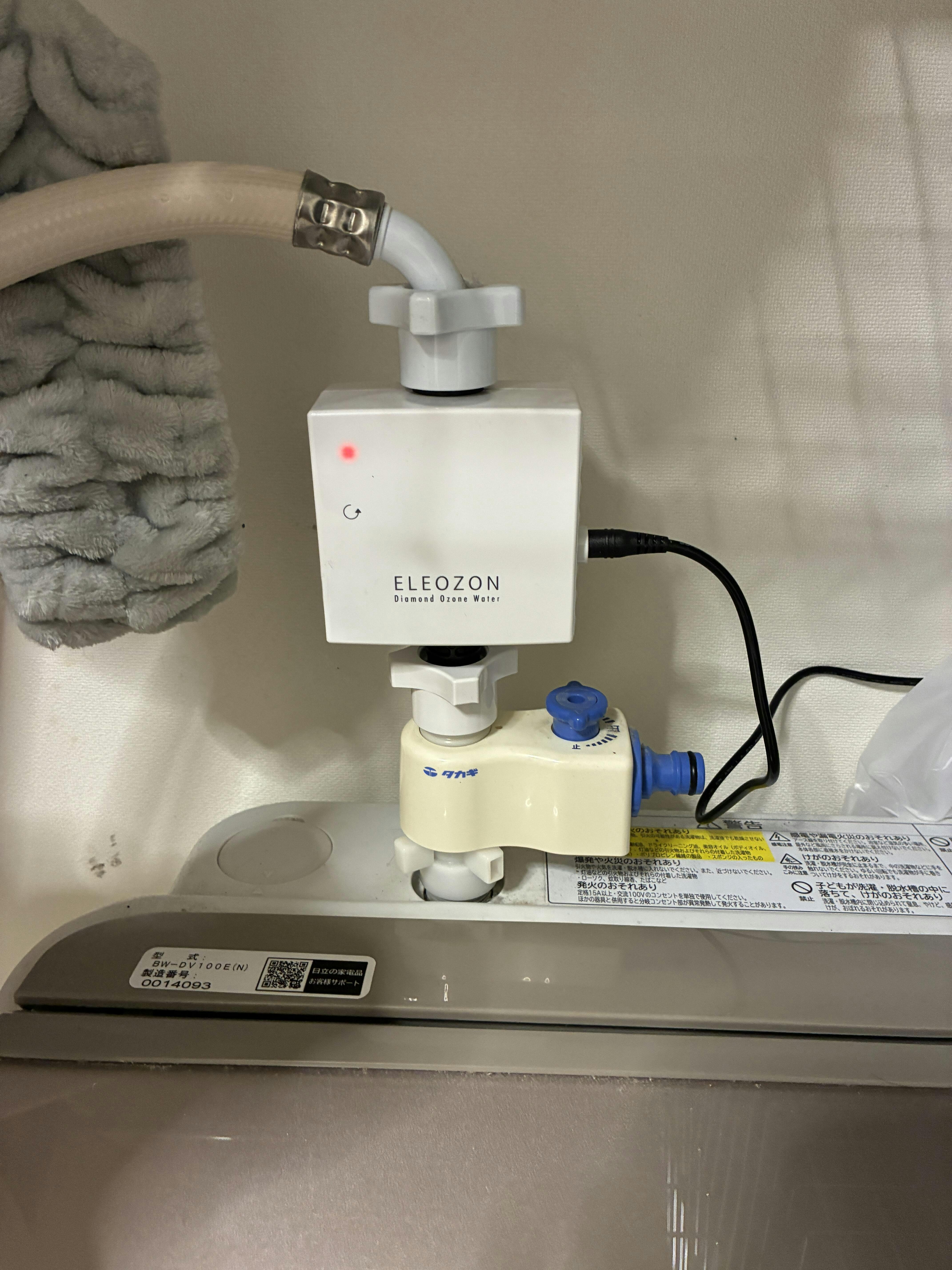 工事不要で洗濯時とホースの間にELEOZONを取り付けるだけ。